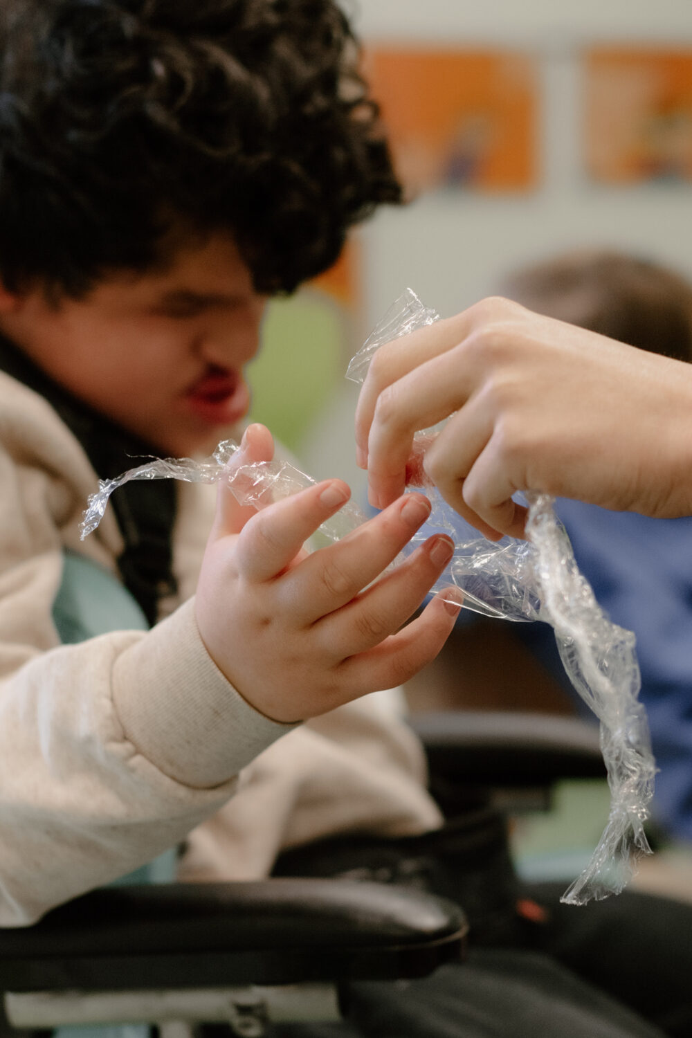 Katrien: “Voor Zoë was het ook best spannend: dit was voor haar de eerste keer dat ze met deze doelgroep aan de slag ging. We hebben daarom na ieder atelier kort geëvalueerd.” Hilde: “In een van de ateliers maakten we gebruik van een snoezelruimte, maar dit werkte niet: de kinderen raakten overprikkeld. Dan hebben we beslist het over een andere boeg te gooien.”