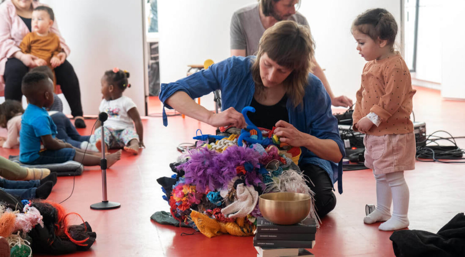 Anne-Beth : Ma première œuvre a été Moestuin (NDLR : Potager), en 2010, que j’ai créée à partir d’un peu de terre et d’un peu d’eau que j’ai amené à la crèche. Je n’avais pas du tout pensé à des choses comme la mise en place du public… Résultat ? Un enfant a immédiatement plongé ses mains dans la terre et a pris la parole... Tout ce que je pouvais faire alors c’était d’embrayer avec les enfants. Ce moment a été particulièrement instructif, à plusieurs niveaux : savoir comment positionner son matériel, savoir que l’on peut compter sur son talent d’improvisation, que l’on doit informer les assistantes maternelles sur le déroulé et sur ce qui va se passer, et leur dire comment se comporter avec les enfants. Tout ce que je voulais faire en tant qu’animatrice s’est alors mis en place : le travail abstrait, la composition instantanée, le contact avec le public, les arts contemporains, mon rôle de maître de cérémonie, la participation…